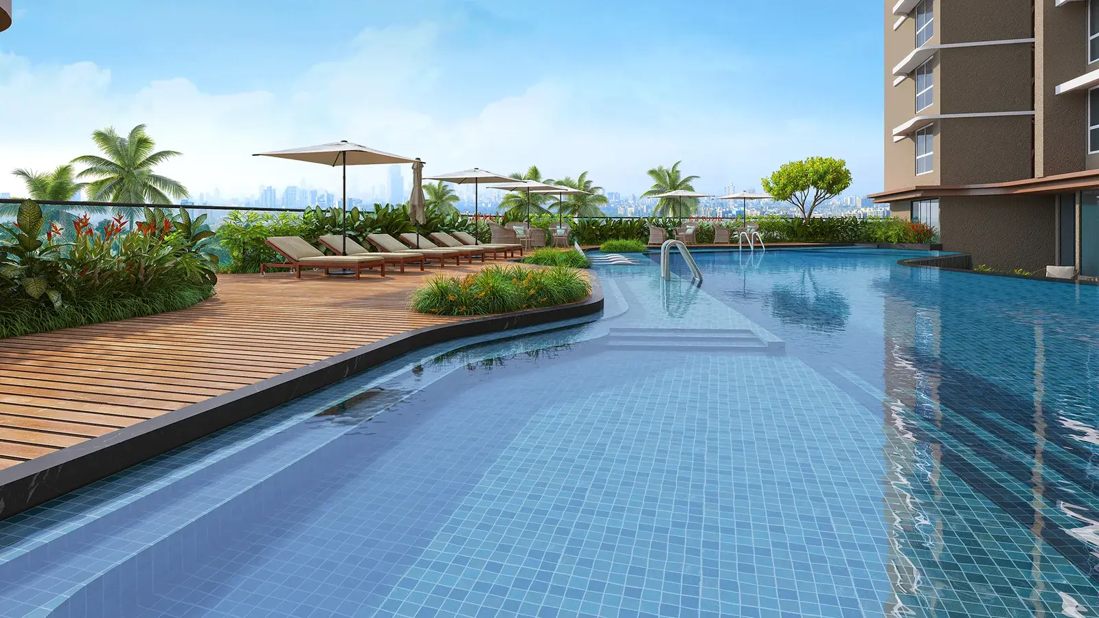 Spread across approximately 1.75 acres with over 50% open-to-sky spaces, the project introduces a tropical inspired residential experience where greenery, water elements and architecture blend harmoniously. The tower rises with 2 basements, 4 podium levels, an E-Deck and 30 habitable floors, creating an elevated lifestyle environment with smart parking and expansive recreational spaces.